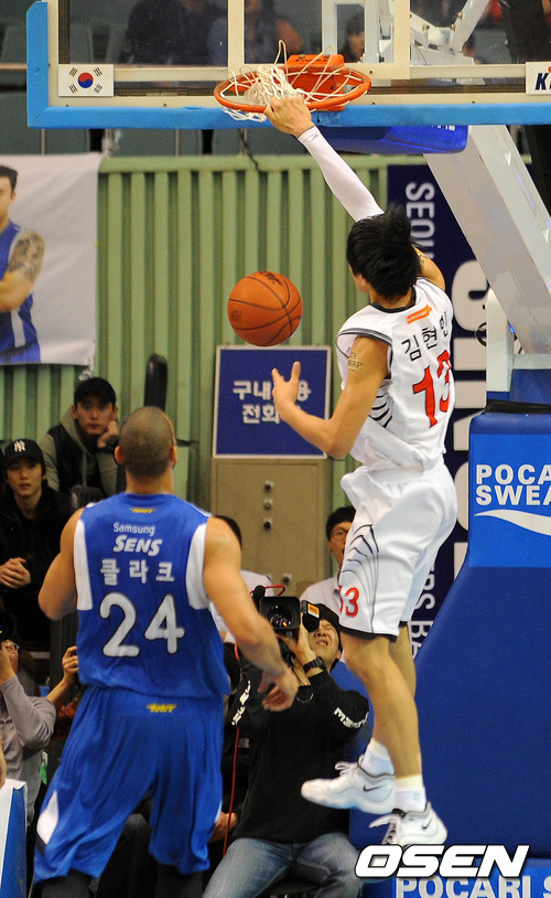 21일 오후 서울 잠실 실내체육관에서 열린 '2011-2012 KB국민카드 프로농구' 서울 삼성과 부산 KT의 경기, 2쿼터 KT 김현민이 덩크슛을 성공시키고 있다.