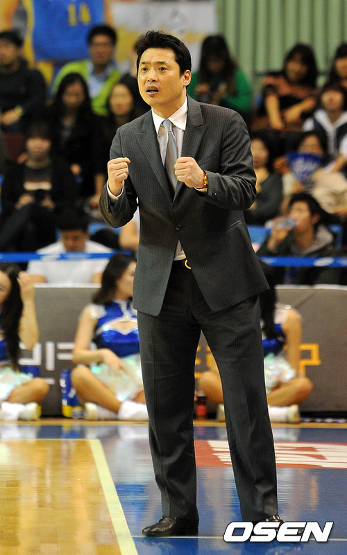21일 오후 서울 잠실 실내체육관에서 열린 '2011-2012 KB국민카드 프로농구' 서울 삼성과 부산 KT의 경기, 4쿼터 삼성 김상준 감독이 선수들에게 작전을 지시하고 있다.