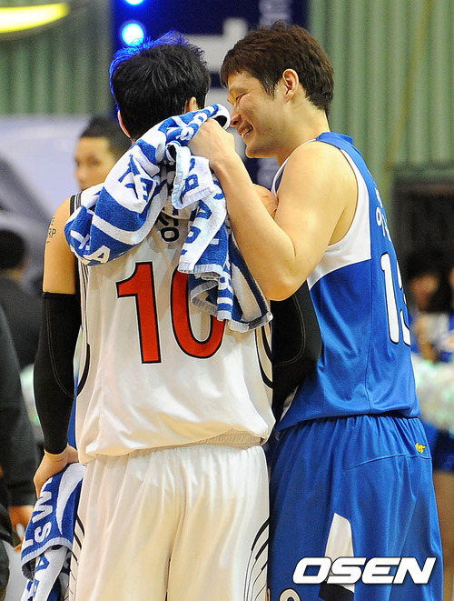 경기 후 삼성 이규섭이 KT 조성민과 이야기를 나누고 있다.