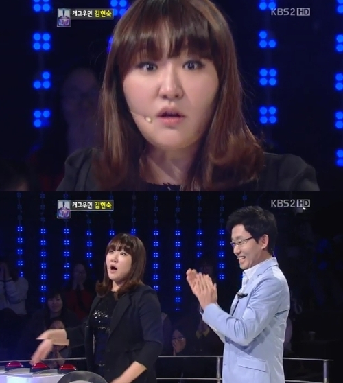 한편 이날 ‘1대 100’에는 김현숙 외에도 룰라 멤버 고영욱이 1인 도전자로 출연했다. 또 연예인 100인 군단은 김종국, 최형만, 양원경, 김학도, 심현섭, 윤서현, 이상인, 박성현, 브라이언, 김현정, 이국주, 이현, 최성조, 박재민이 도전했다.