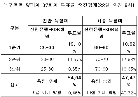 농구토토 W매치 37회차는 경기시작 10분전인 23일 오후 4시 50분 발매가 마감된다.