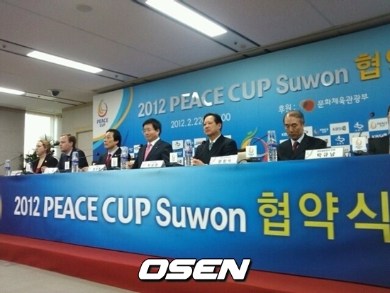 [OSEN=수원, 이균재 인턴기자] 피스컵 조직위원회(이하 조직위)가 수원시와 KBS N과 함께 '2012 피스컵 수원 협약식'을 체결했다.