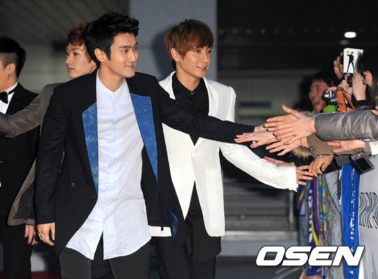22일 오후 서울 한남동 블루스퀘어 삼성카드홀에서 열린 '제1회 가온차트 K-POP 어워드'에서 그룹 슈퍼주니어가 레드카펫 행사를 갖고 있다.