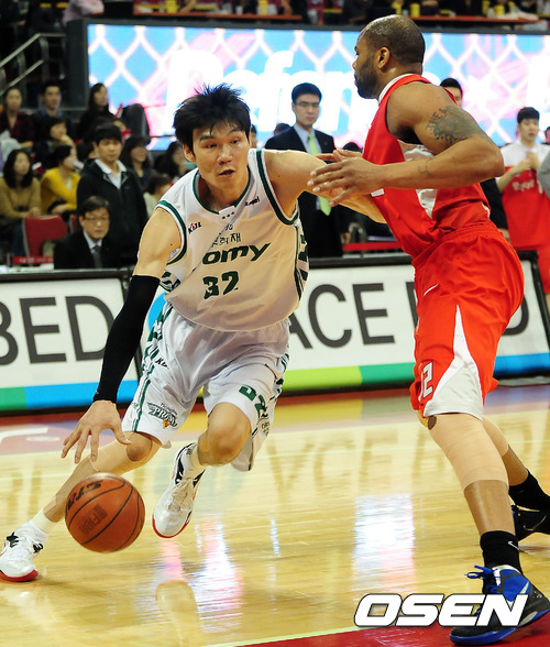 22일 오후 서울 잠실 학생체육관에서 열린 '2011~2012 KB국민카드 프로농구' 서울 SK와 원주 동부의 경기에서 1쿼터 동부 김주성이 SK 존슨을 돌파하고 있다.