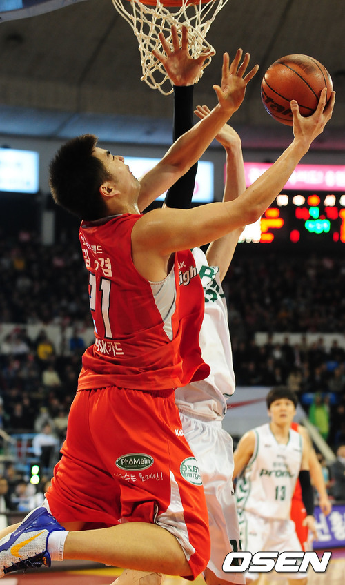 22일 오후 서울 잠실 학생체육관에서 열린 '2011~2012 KB국민카드 프로농구' 서울 SK와 원주 동부의 경기에서 4쿼터 SK 김우겸이 리버스 레이업슛을 성공시키고 있다.