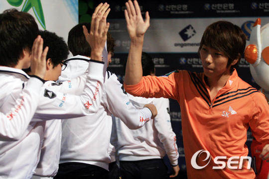 SK텔레콤은 22일 서울 용산 온게임넷 e스포츠 상설경기장에서 열린 'SK플래닛 스타크래프트 프로리그 2012시즌1' 웅진과 경기서 2-1로 앞선 4세트 도재욱의 시원한 끝내기로 3-1 승리를 거뒀다. 시즌 9승째(8패)를 올린 SK텔레콤은 웅진을 승차없이 세트득실에서 앞서며 3위 자리를 탈환하며 포스트시즌 진출을 위한 발판을 마련하는데 성공했다. 아울러 이날 승리로 대망의 프로리그 200승 고지에 단 1승 만을 남겨두게 됐다.