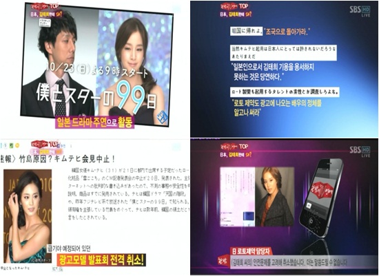 22일 방송된 SBS '한밤의 TV연예'에서는 반한류의 직격탄을 맞고 있는 '한류스타' 김태희와 장근석의 사태를 조명했다.