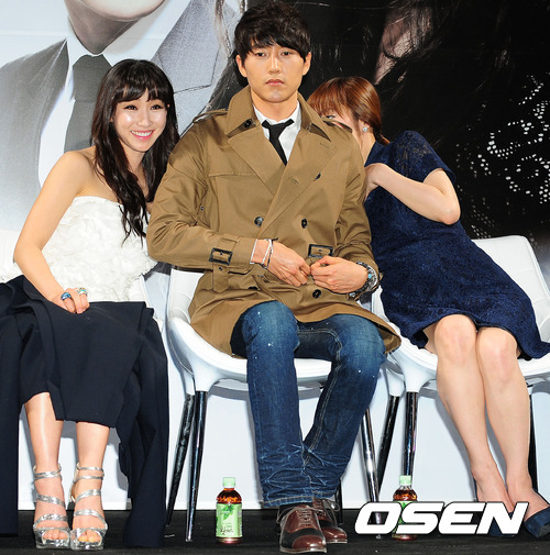 23일 오후 서울시 강남구 신사동 청담씨네시티 M cube에서 열린 tvN 일일드라마 '노란복수초' 제작발표회에서 현우성 뒤에서 이유리와 윤아정이 얘기를 나누고 있다.
