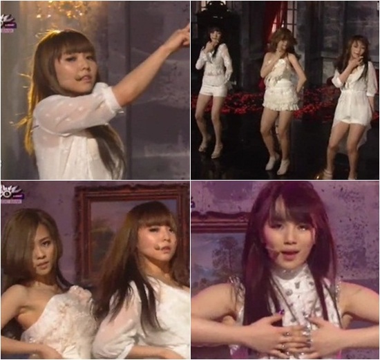 이날 화려한 클럽복장으로 무대에 올라 'Over U'로 포문을 연 미쓰에이는 '터치' 무대에서는 장미꽃이 한가득 떨어진 무대에서 청초한 매력을 뽐냈다. 이전 무대에서 화제가 됐던 붕대의상를 벗고 그 대신 화이트 시스루 미니원피스로 청순하면서도 은근한 섹시 매력을 강조했다.