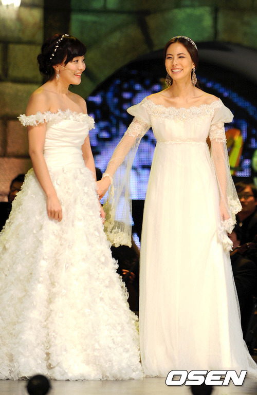 24일 오후 서울 서초동 한전아트센터에서 열린 tvN '오페라스타 2012' 3라운드 경연에서 다나와 박지윤이 이야기를 나누며 탈락자 발표를 기다리고 있다.