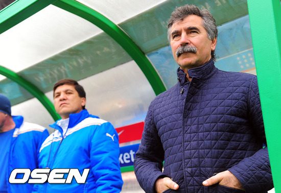 25일 오후 전주월드컵경기장에서 열린 최강희 감독이 이끄는 한국축구대표팀과 우즈베키스탄과의 평가전 경기에 앞서 우즈베키스탄 바디 아브라모프 감독이 그라운드를 바라보고 있다