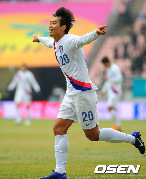 25일 오후 전주월드컵경기장에서 열린 최강희 감독이 이끄는 한국축구대표팀과 우즈베키스탄과의 평가전에서 전반 이동국이 선취골에 이어 팀 두번째 골을 성공시킨 후 기뻐하고 있다.