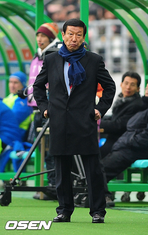 25일 오후 전주월드컵경기장에서 열린 최강희 감독이 이끄는 한국축구대표팀과 우즈베키스탄과의 평가전에서 후반 한국대표팀이 연거푸 실점을 하자 최강희 감독이 답답한 표정을 짓고 있다.