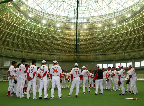 SK는 26일 오후 1시 일본 오키나와현 이시카와 구장에서 열릴 예정이던 양팀의 경기가 전날부터 계속 내리고 있는 비 때문에 할 수 없게 됐다고 밝혔다. 이에 따라 SK는 구시카와 구장 내 실내연습장에서 자체 훈련에 나섰다.