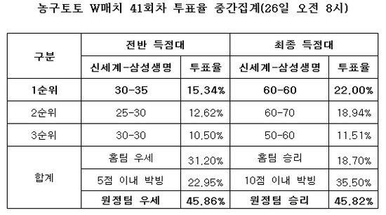 2011-2012시즌 농구토토 W매치 41회차 투표율 중간집계 결과