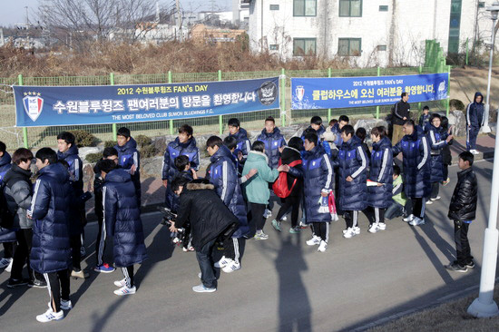 수원은 지난 26일 오후 2시 경기도 화성 클럽하우스에서 ‘2012 블루윙즈 팬즈데이(Fan's Day)를 개최, 팬들에게 클럽하우스를 처음 공개한 가운데 클럽하우스 투어 및 신인 선수들의 장기자랑 등의 행사를 갖고 팬들과 즐거운 시간을 보냈다.