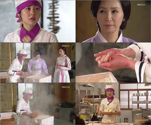 지난 26일 방송에서는 고준영(성유리 분)이 뜨거운 열기에 손과 팔이 붉게 달아오르면서까지 가마솥의 순두부를 바가지로 퍼내며 두부에 대한 집념을 모습을 보였다. 이 모습을 본 성도희는 두부를 버리라 명했고, 인주 역시 한심한 눈으로 준영을 바라보며 경합을 포기하라 전했다.