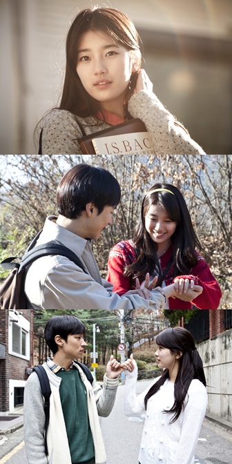 '건축학개론'의 예고편을 통해 승민 역 이제훈과의 두근거리는 키스신을 공개하며 관심을 일으킨 수지는 새하얀 피부, 성숙한 여대생 스타일로 '첫사랑의 아이콘' 다운 매력을 발산한다.