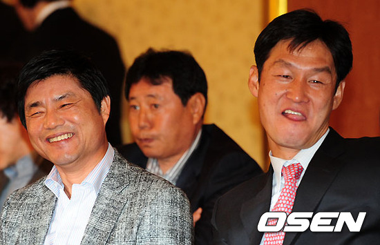 27일 오전 서울 홍은동 그랜드힐튼호텔에서 진행된 '2012 K리그 개막 미디어데이'에서 수원 윤성효 감독과 서울 최용수 감독이 이야기를 나누고 있다.