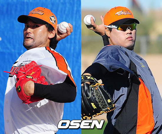 한화 '코리안특급' 박찬호(39)와 '괴물 에이스' 류현진(25)이 하루 미뤄진 29일 KIA와 연습경기에 동시 출격한다. 당초 28일 SK와 연습경기에 각각 선발과 구원으로 등판할 계획이었지만 비로 취소되는 바람에 물거품됐다. 하지만 29일 KIA와 연습경기를 잡는데 성공하며 두 투수의 동시 출격이 이뤄지게 됐다.