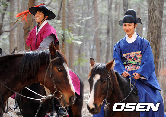 28일 오후 경기도 파주 소령원에서 진행된 SBS 새 수목극 '옥탑방 왕세자' (연출 신윤섭) 촬영 현장에서 배우 정석원과 이민호가 리허설을 갖고 있다.