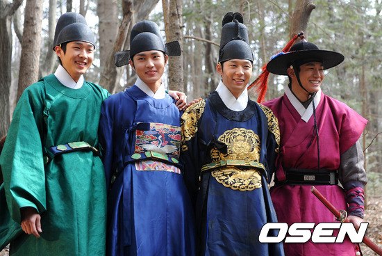 28일 오후 경기도 파주 소령원에서 진행된 SBS 새 수목극 '옥탑방 왕세자' (연출 신윤섭) 촬영 현장에서 배우 최우식, 이민호, 박유천, 정석원이 포토타임을 갖고 있다.