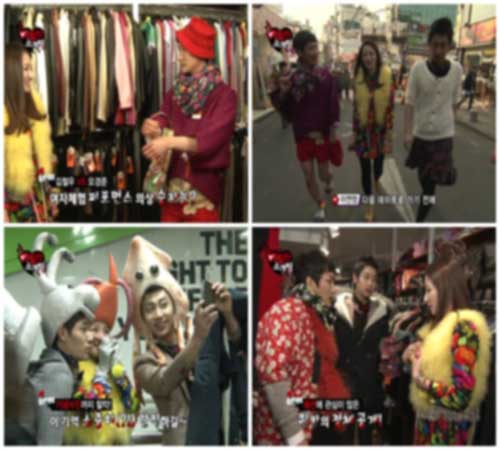 이날 녹화에서 그는 남자 출연자들과의 첫 만남에서, 구제옷이 즐비한 여성 옷 가게로 향해 남자들에게 빨간 파란 꽃무늬가 화려하게 수 놓아진 옷을 입을 것을 권했다.