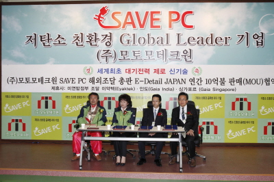 이번 협약은 ㈜모토모테크원의 대기전력 차단 컴퓨터 ‘세이브PC’를 일본과 미국, 인도, 싱가포르 등 해외조달시장에 연간 10억 달러 이상 공급한다는 내용이 골자다.