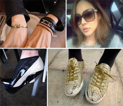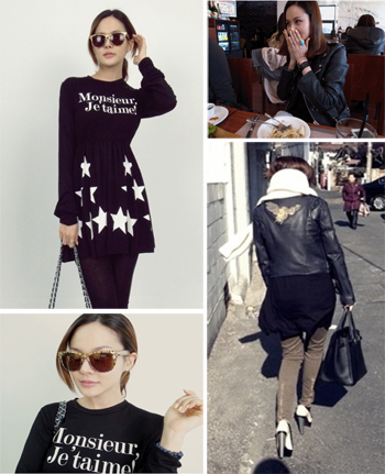 올 블랙 원피스에는 골드 컬러 슈즈를 신어 심심할 수 있는 스타일에 화려하고 유니크한 멋을 더했다. 뿐만 아니라 가죽재킷을 입을 때는 그에 맞는 와일드한 팔찌를 매치하는 등 작은 포인트 하나도 잊지 않았다.