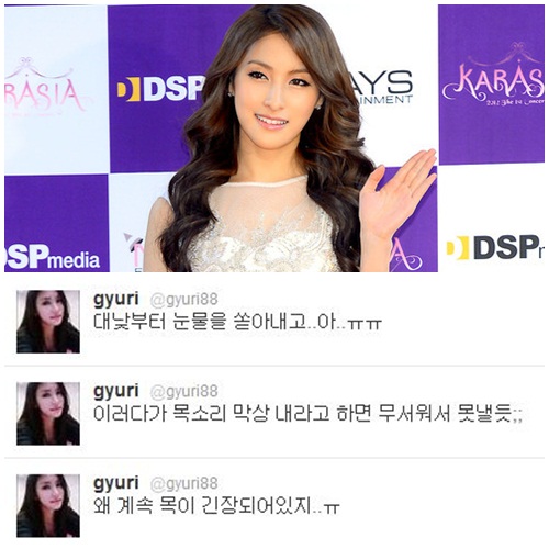 박규리는 29일 오후 자신의 트위터에 “왜 계속 목이 긴장되어있지. 이러다가 목소리 막상 내라고 하면 무서워서 못 낼 듯”라며 “대낮부터 눈물을 쏟아내고”라는 글을 연이어 올리며, 수술 후 마음고생을 하고 있는 근황을 전했다.