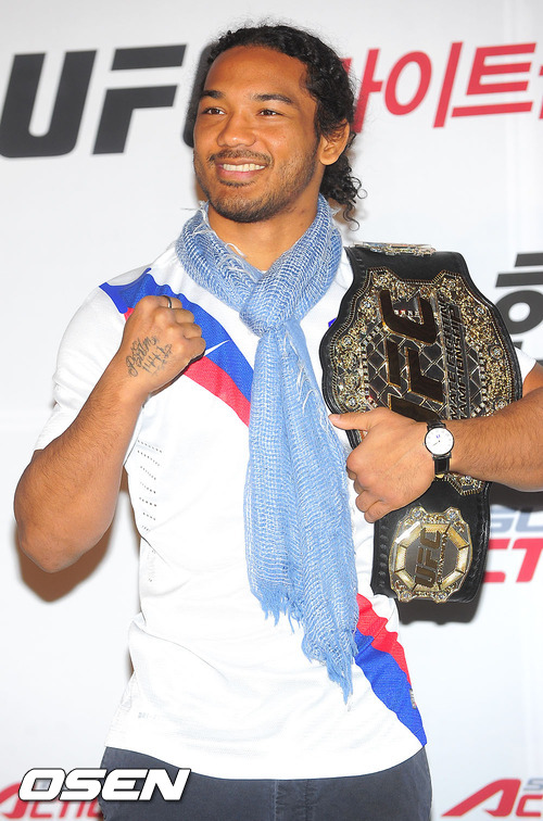 '김치 파이터' 벤 헨더슨(29, 미국)의 기자회견이 29일 서울 성산동 서울월드컵경기장 내 CGV에서 개최됐다. 헨더슨은 지난 26일 일본 사이타마 슈퍼 아레나에서 열린 UFC 144 대회의 메인 이벤트에서 라이트급(70kg 이하) 챔피언 프랭키 에드가(미국)를 상대로 심판 전원일치 판정승을 거두고 새 챔피언에 올랐다.