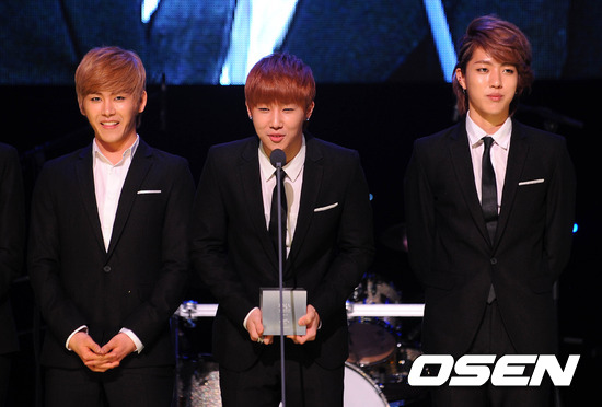 29일 오후 서울 광장동 악스코리아에서 진행된 '제9회 한국대중음악상 시상식'에서 네티즌이 뽑은 올해의 음악인 그룹상을 수상한 그룹 인피니트가 수상 소감을 말하고 있다.