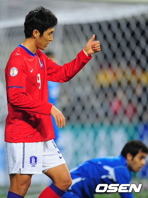29일 오후 서울월드컵경기장에서 열린 2014브라질월드컵 아시아지역 3차예선 최종전(6차전) 대한민국과 쿠웨이트의 경기 전반 한상운이 골찬스를 놓친후 엄지손가락을 보이고 있다.