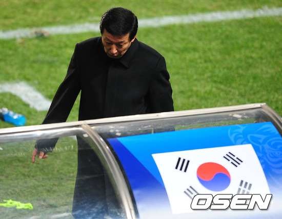 29일 오후 서울월드컵경기장에서 열린 2014 브라질월드컵 아시아지역 3차예선 최종전 대한민국과 쿠웨이트의 경기, 전반을 득점없이 마친 한국 최강희 감독이 자리에서 일어나고 있다.