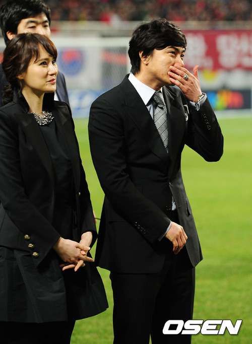 [OSEN=민경훈 기자, 서울월드컵경기장] 29일 오후 서울월드컵경기장에서 열린 2014브라질월드컵 아시아지역 3차예선 최종전(6차전) 대한민국과 쿠웨이트의 경기 하프타임때 안정환이 은퇴식중 눈물을 흘리고 있다.