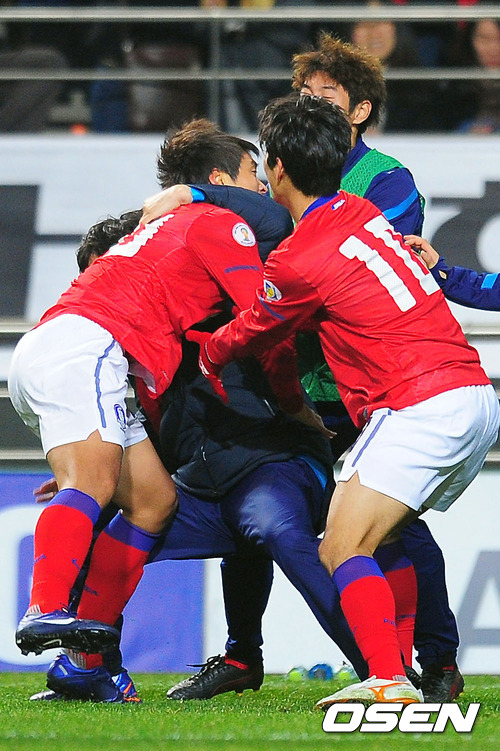 29일 오후 서울월드컵경기장에서 열린 2014브라질월드컵 아시아지역 3차예선 최종전(6차전) 대한민국과 쿠웨이트의 경기 후반 이동국이 선취골을 넣고 환호하고 있다.
