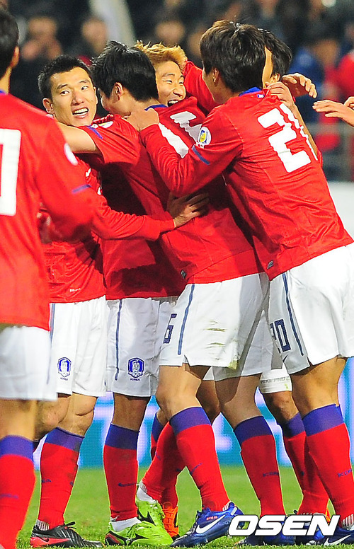 29일 오후 서울월드컵경기장에서 열린 2014브라질월드컵 아시아지역 3차예선 최종전(6차전) 대한민국과 쿠웨이트의 경기 후반 이근호가 팀 두번째 골을 성공시킨 후 동료들과 기쁨을 나누고 있다.