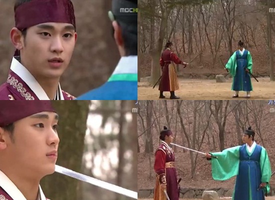 29일 방송된 MBC '해를 품은 달'에서 이훤(김수현 분)은 허연우(한가인 분)을 위기에서 구해 도망친 양명(정일우 분)을 찾아 역모죄라며 진검 대결을 신청했다.