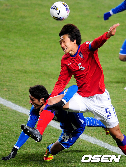 전반 한국 곽태휘가 공중볼을 처리하고 있다./ jpnews@osen.co.kr