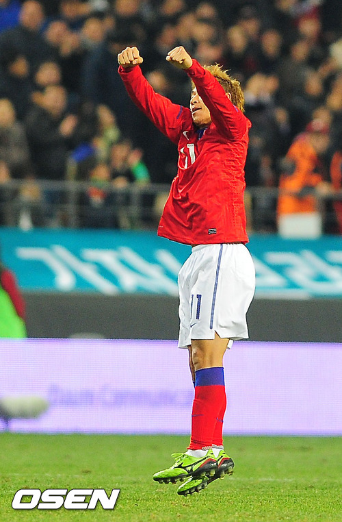 후반 이근호가 추가골에 성공한 후 펄쩍 뛰어오르며 두 주먹을 뻗고 있다./ rumi@osen.co.kr