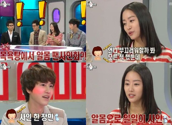 29일 방송된 MBC '황금어장-라디오스타'는 몸짱 우열반 특집으로 진행됐다. 이에 몸짱의 좋은 예로 등장한 전혜빈은 목욕탕에서 얼떨결에 알몸 사인회를 했다고 밝혔다.