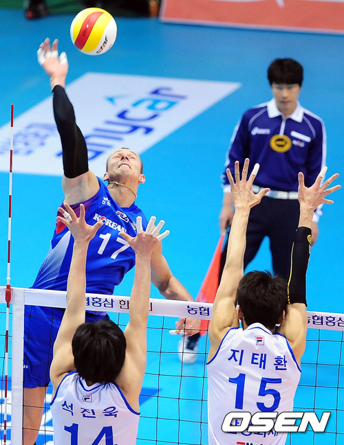 1일 오후 대전 충무체육관에서 열린 '2011-2012 NH농협 V리그' 남자부 삼성화재와 대한항공의 경기 1세트 대한항공 마틴이 공격을 시도하고 있다.