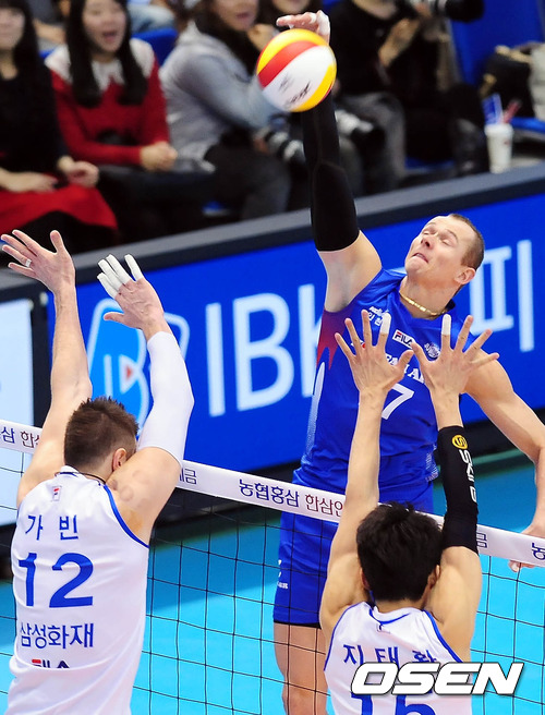 1일 오후 대전 충무체육관에서 열린 '2011-2012 NH농협 V리그' 남자부 삼성화재와 대한항공의 경기 1세트 대한항공 마틴이 공격을 시도하고 있다.