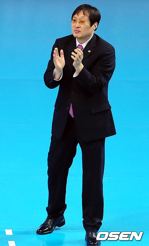 1일 오후 대전 충무체육관에서 열린 '2011-2012 NH농협 V리그' 여자부 인삼공사와 흥국생명의 경기 1세트 흥국생명 차해원 감독이 선수들을 격려하고 있다.