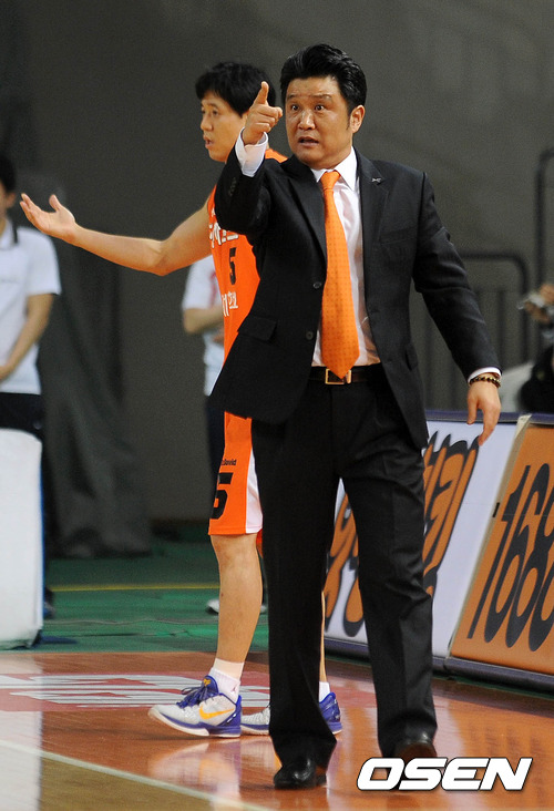 1일 오후 인천 삼산실내체육관에서 열린 '2011-2012 KB국민카드 프로농구' 인천 전자랜드와 창원 LG의 경기, 1쿼터 전자랜드 유도훈 감독이 선수들에게 작전을 지시하고 있다.