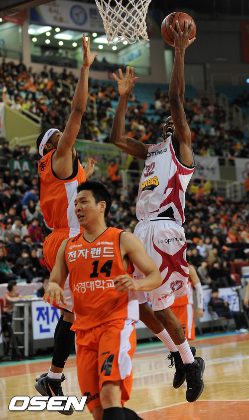 인천 전자랜드는 지난 25일 원주 치악체육관에서 열린 동부와의 경기에서 19점을 폭발시킨 동부 이광재의 외곽포를 막지 못하고 66-75로 무릎을 꿇었다. 반면, 창원 LG는 지난 24일 창원 실내체육관서 열린 서울 SK와의 경기서 막판까지 승패를 알 수 없었던 치열한 접전 끝에 애론 헤인즈의 버저비터로 73-71로 승리했다. / sunday@osen.co.kr