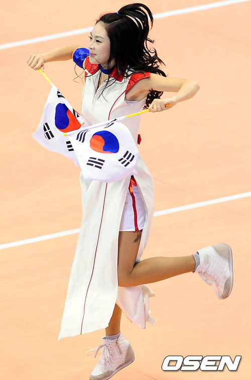 1일 오후 대전 충무체육관에서 열린 '2011-2012 NH농협 V리그' 남자부 삼성화재와 대한항공의 경기, 치어리더들이 화려한 공연을 펼치고 있다.