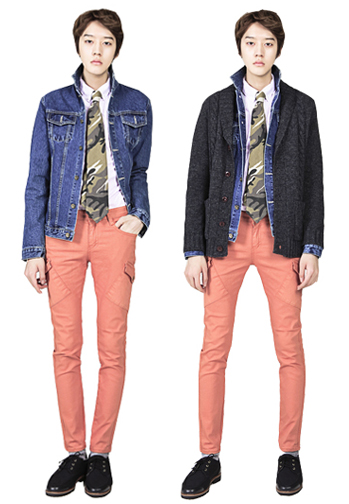 아울러 남성다움을 부각시켜주는 카고팬츠는 네이비 컬러보다는 카키컬러를 선택하면 2012 S/S 트렌드 컬러인 탠저린 오렌지 컬러와도 완벽한 궁합을 자랑한다. 옐로 컬러로 포인트를 준 블루종 재킷이나 스터드 장식의 밀리터리 재킷에 워커부츠를 더한다면 남자다움을 유감없이 표현할 수 있다.