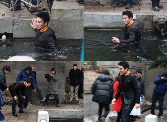 이 날 추위는 한풀 꺾인 듯 보였지만 아직까지 차디찬 얼음장 같은 물 속에서 주상욱은 스태프들이 미리 준비한 스킨 스쿠버 옷을 수트 안에 입고 촬영에 임했다. 겉보기와는 달리 가슴팍까지 오는 깊은 수심의 연못에서 일단 한번 입수를 하면 한 번의 NG도 허락하지 않는 상황까지 겹쳤음에도 주상욱은 연기 투혼을 보이며 성공적으로 촬영을 마쳤다고.