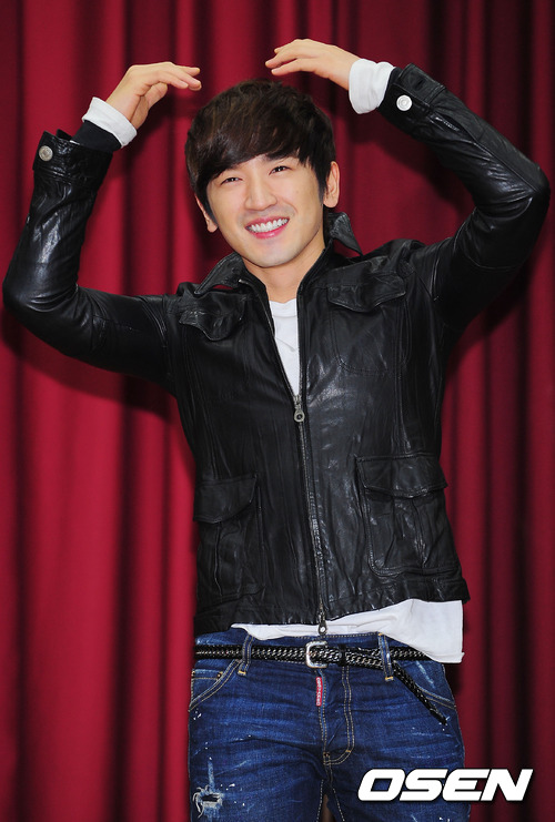 2일 오전 서울역에서 소집해제를 한 신화 멤버 가수 이민우가 한국철도공사 대강당에서 소집해제 팬들을 향해 하트 사인을 보내고 있다.